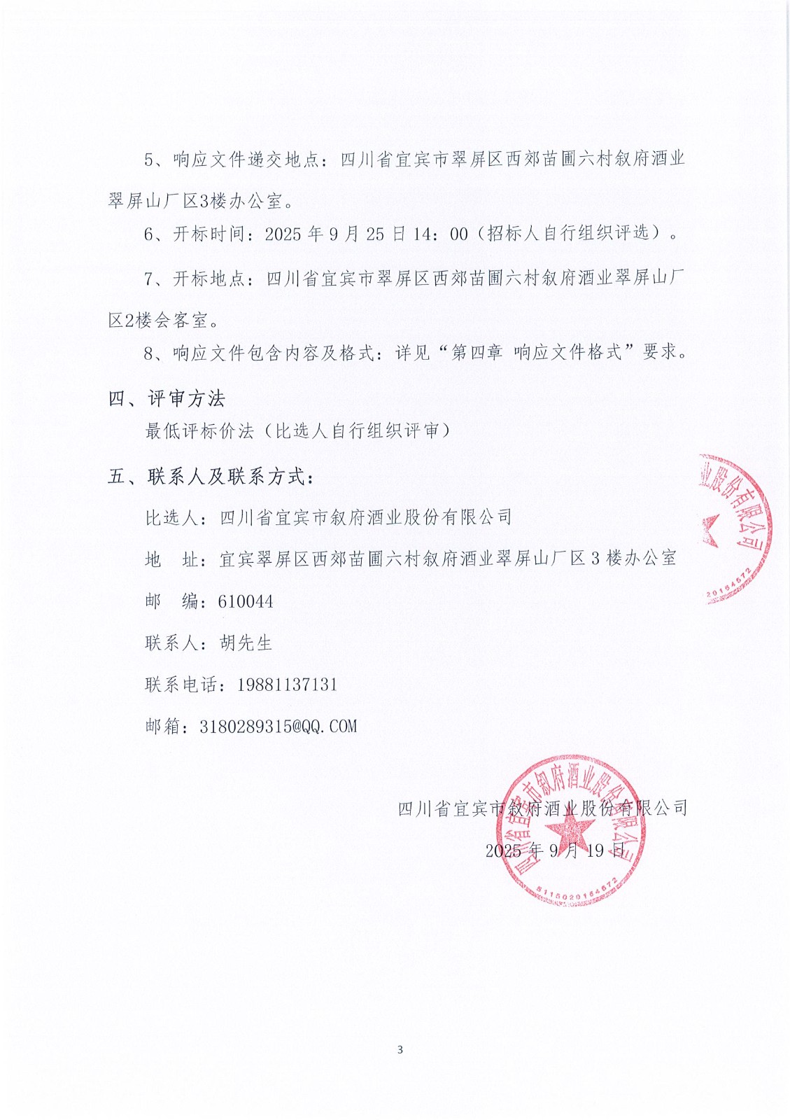 四川省宜賓市敘府酒業(yè)股份有限公司草簾采購項目比選結果公示