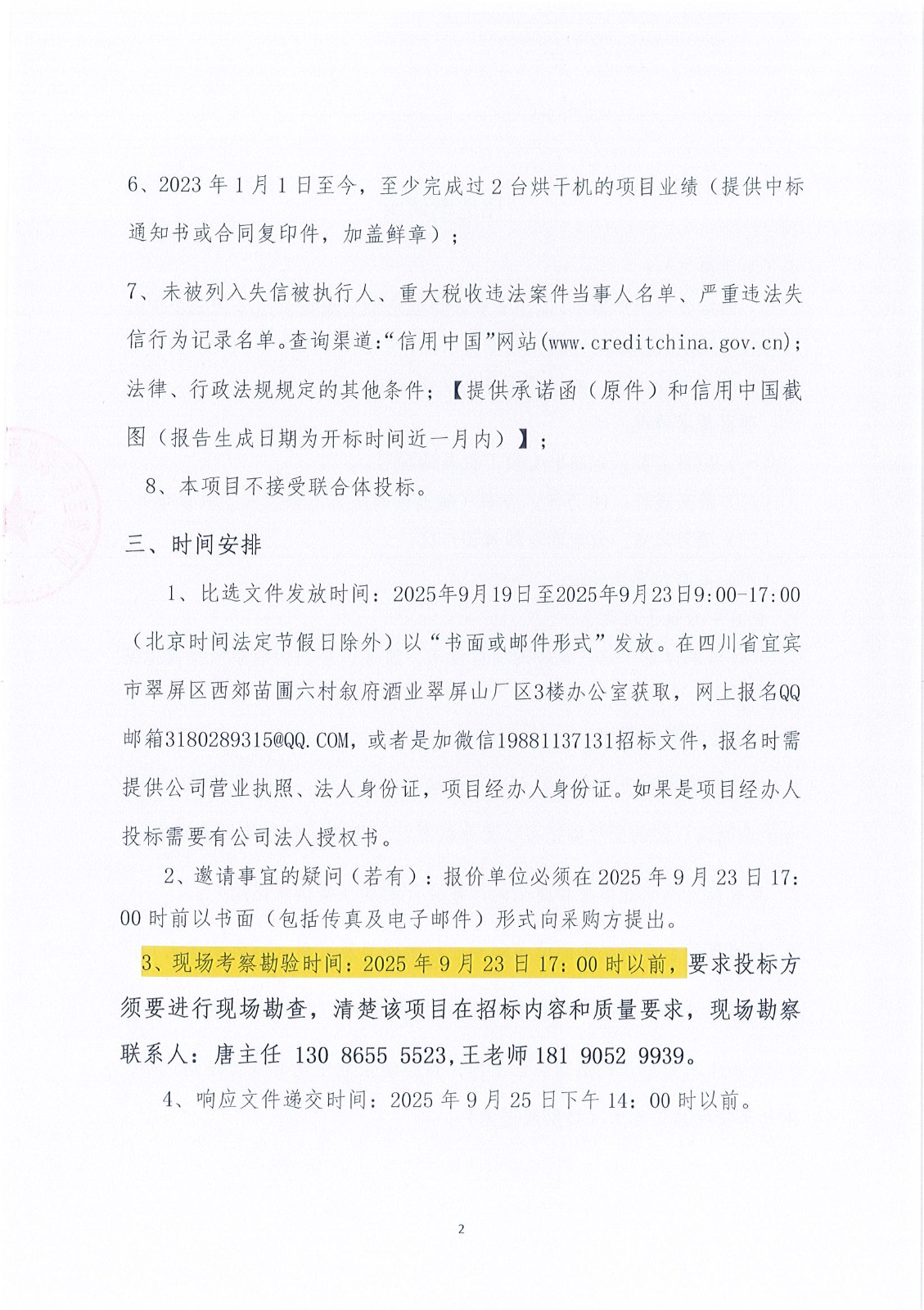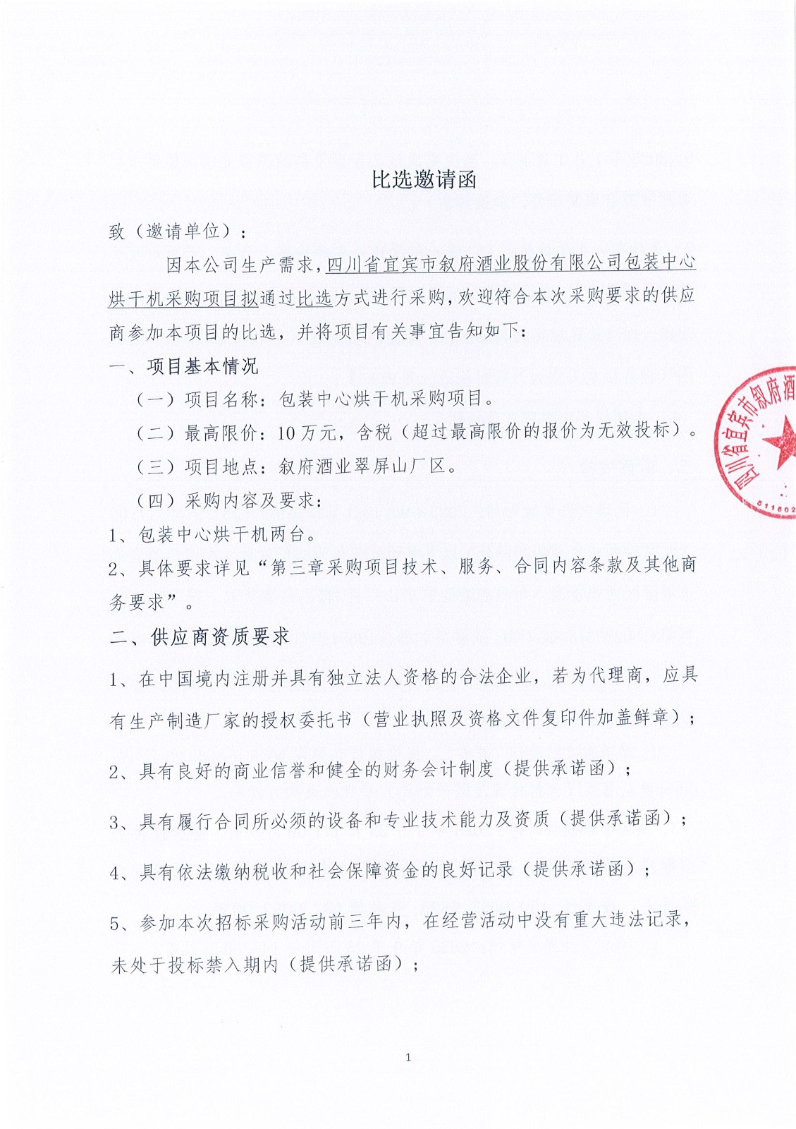 四川省宜賓市敘府酒業(yè)股份有限公司包裝中心烘干機(jī)采購項目流標(biāo)公示公告